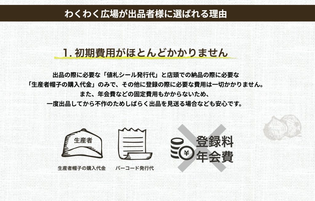わくわく広場での出品は、初期費用が少ないのが魅力です。
