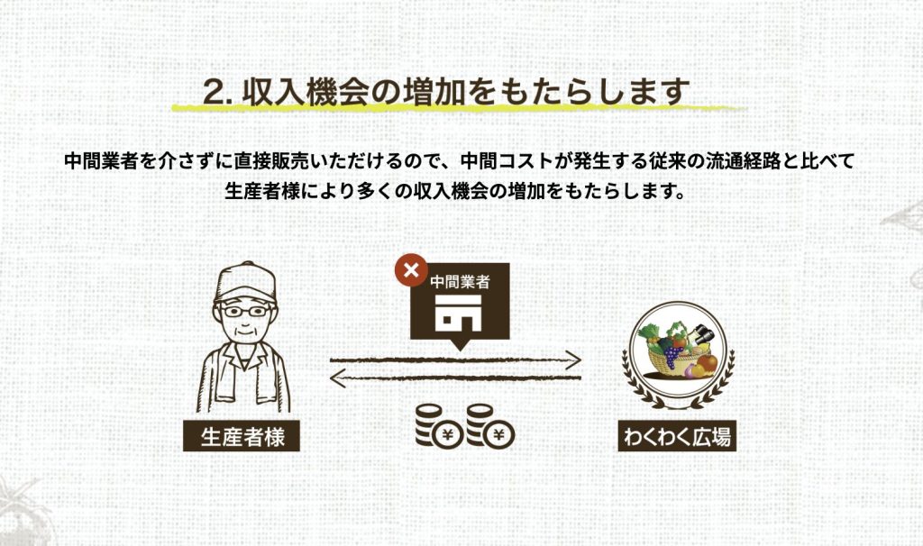これにより、中間コストが発生する従来の流通経路と比べて、生産者により多くの収入機会をもたらします。