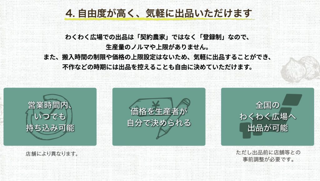 わくわく広場は、多くの生産者(出品者)にとって商品を直接消費者に届ける素晴らしい場です。